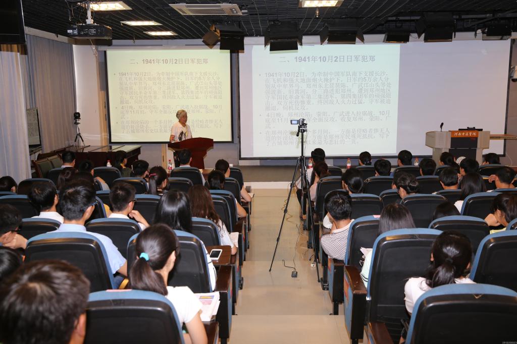 郑州有3600年的文明史,但它的抗战史却很少人知道。2015年6月17日下午,河南博物院中原历史文化宣讲团走进我校,为机关党委党员干部代表和8个院部学生代表作了一场以抗战为主题的精彩讲座。活动由河南博物院社教部外联科科长刘璐主持。