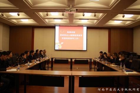 2016年4月6日下午,郑州市公安局出入境管理处处长张煜舟一行5人来我校调研外事管理工作并宣传《中华人民共和国出入境管理法》。会议由国际教育学院院长路玫主持,副校长郭德欣和国际教育学院全体同志参加了座谈会。