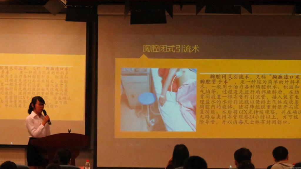 参赛同学正在介绍荣获一等奖的作品“新型胸腔引流管”