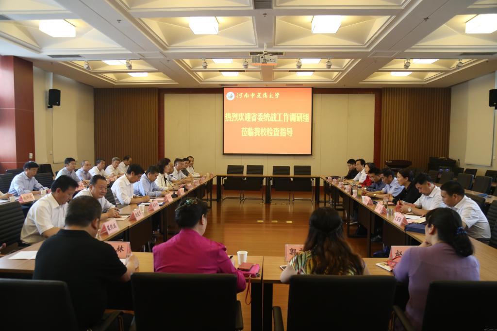 2016年5月5日下午,省委高校工委专职委员陈垠亭率省管高校统战工作调研检查组一行7人,到我校实地调研检查统战工作,并召开座谈会。校党委书记孙建中、副书记张丽霞,中国致公党河南省委筹委会副主任、全国政协委员司富春,无党派代表人士、省人大常委会委员冯卫生,我校4个民主党派基层组织负责人,部分有关职能部门负责人,以及有统战任务的党总支负责人参加会议。会议由校党委副书记张丽霞主持。
