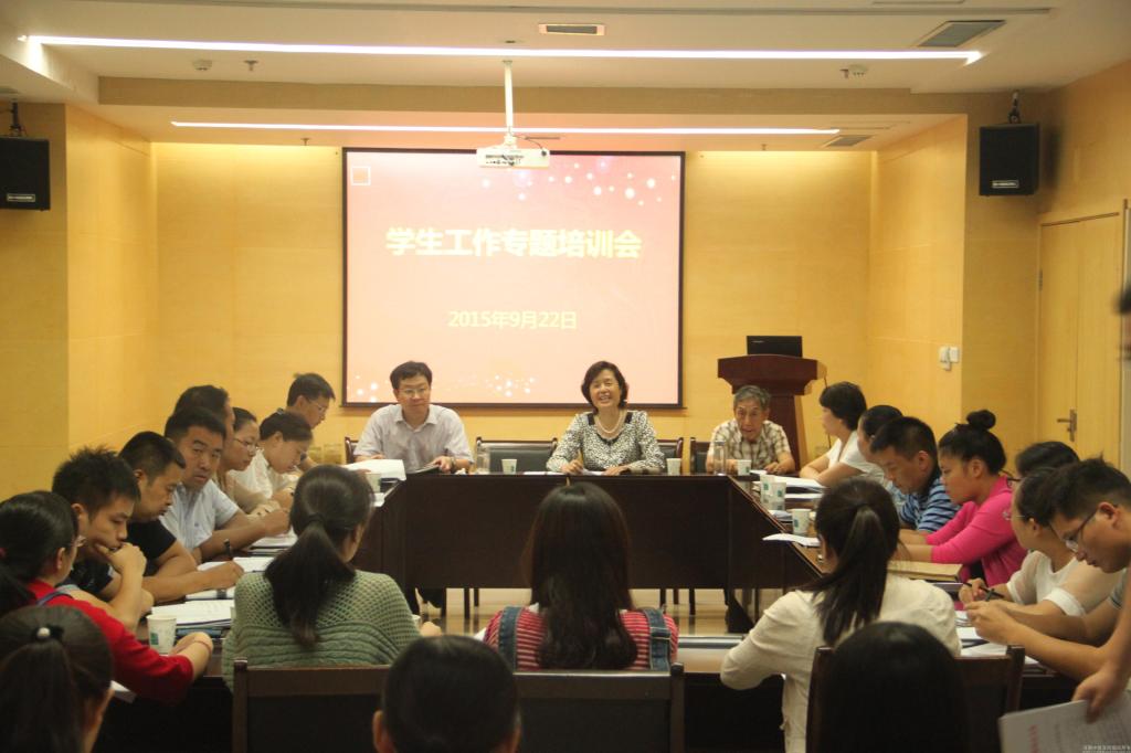 新学期伊始,为进一步提升学生工作水平,促进和谐校园建设,2015年9月22日上午,我校在教学实验大楼BM708召开学生工作专题培训会,进行民族团结和宗教知识相关培训,并对2015级新生入学教育进行安排。学校党委张丽霞副书记出席会议,各二级学院学工办主任和新生辅导员参加本次培训。培训会由学工部部长、学生处处长刘金厂主持。