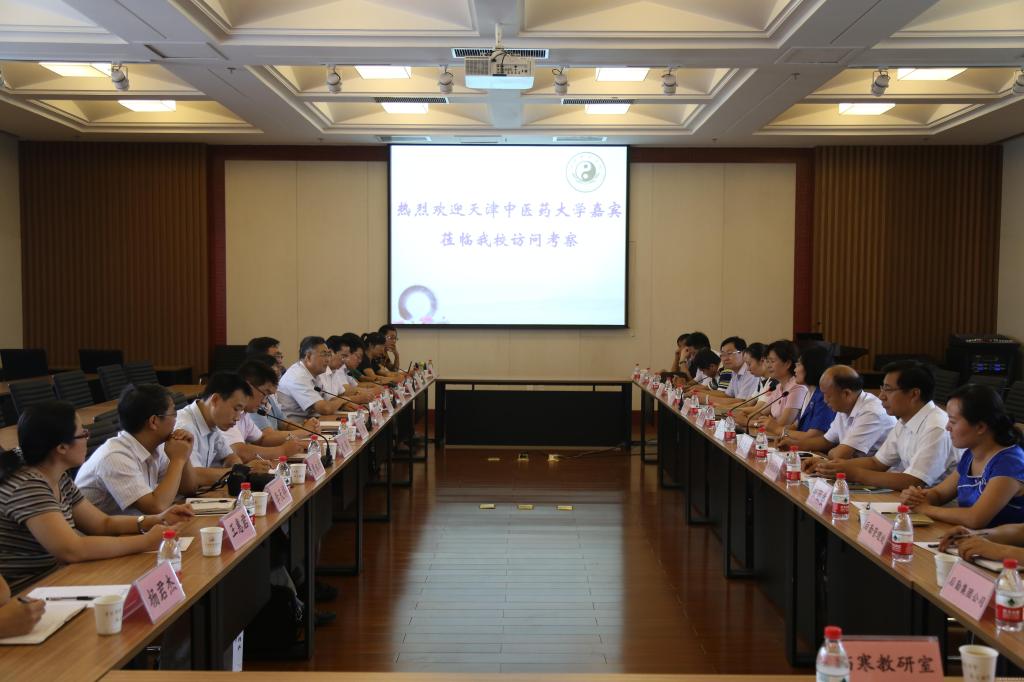 2015年9月4日-5日,天津中医药大学党委副书记刘红军、副校长于越带领党政办公室、党委宣传部、教务处、学生处、基建处、图书馆等职能部门负责人及中药学院标本馆、中医学院伤寒教研室专家一行13人来我校考察交流,并就双方关心的问题展开座谈。校领导郑玉玲、张丽霞、李建生、许东升陪同考察或出席座谈。
