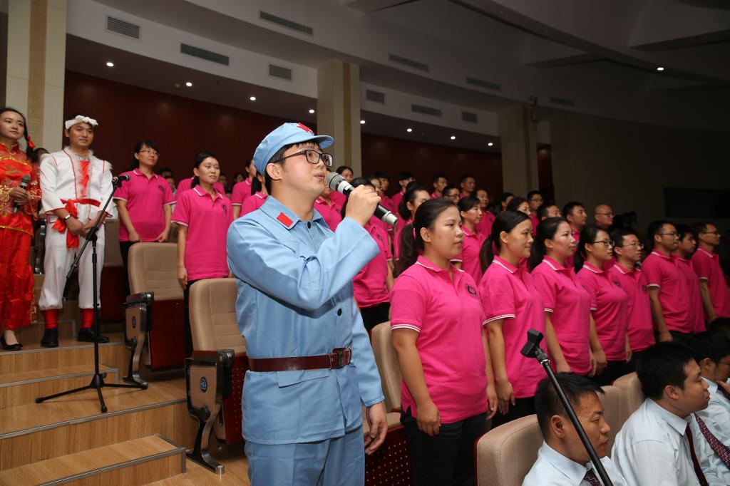 比赛在全体参赛人员演唱的国歌声中拉开帷幕。院长郑玉玲领唱机关党委参赛曲目《映山红》,优美的旋律,深情的歌词,表达了人们对红军的热爱,对英雄的崇敬。紧接着《黄河大合唱》、《毕业歌》、《共青团员之歌》、《二月里来》、《弹起我心爱的土琵琶》、《游击队歌》、《地道战》、《歌唱二小放牛郎》、《抗日将军出征歌》、《黄水谣》、《到敌人后方去》、《跟着共产党走》、《英雄赞歌》、《万泉河水清又清》、《南泥湾》、《毛主席话儿记心上》、《大刀进行曲》、《团结就是力量》、《没有共产党就没有新中国》等一首首耳熟能详的革命歌曲,把人们带回到那个战火纷飞的年代。各个参赛代表队着装整齐、精神饱满,通过大合唱的形式,配之以歌舞、朗诵、器乐演奏等艺术形式,抒发对党和祖国的无限热爱和衷心祝福,展现出团结进取、昂扬向上的精神风貌。比赛现场高潮迭起,掌声不断。最后,全体参赛人员共唱《歌唱祖国》,比赛在嘹亮的歌声中圆满结束。经过激烈角逐,三附院党委等八支代表队荣获优胜奖、人文学院党委等七支代表队荣获优秀奖。