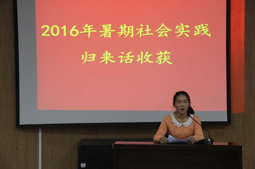 为总结交流大学生暑期“三下乡”社会实践活动的收获和经验,巩固活动成果,2016年9月28日中午,我校召开了2016年“暑期社会实践归来话收获”报告会。校团委相关负责人,各院(部)学生会主席、实践部部长以及参与暑期社会实践优秀学生代表参加了报告会。