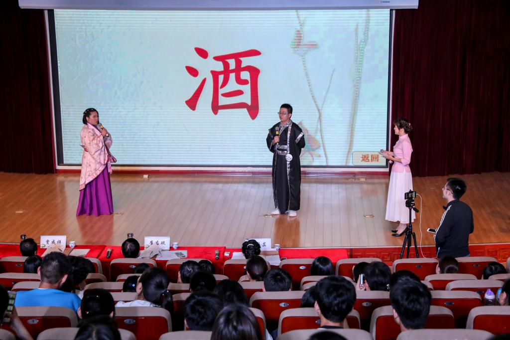 本次诗词大会以“感受中医之美、赏析诗词之韵、学习文化之粹”为主题,从四月初开展以来,历时一个多月,以团支部活力工程主题团日为平台,通过院系选拔、校级初复赛的层层把关,最终有郜文豪等八名选手进入决赛。决赛将选手分为两组进行比拼,共分为“春深之际初逢君”——选手展示、“青梅煮酒论英雄”——选手答题、“飞花相和入杏林”——飞花令三个环节。在“选手展示”环节,选手们演绎了“陆游和唐婉的故事”和“四大才子的故事”;其中,“四大才子”借用“梅兰竹菊”四君子、抓住“诗香赋杏林”主题吟诗对赋,充分展现了选手们的诗情才赋。接着,在“选手答题”环节,选手们随机选题号,面对乱字组诗、九宫格填诗、中医药知识鉴赏等不同难度的题目,临危不惧,时而沉着思考,时而对答如流。最后,在“飞花令”环节,选手们展开了激烈而精彩的对诗竞答,以扎实的中医学知识、深厚的古诗词文化底蕴和出色的临场表现赢得了阵阵掌声,为现场观众带来了一场传统文化的饕餮盛宴。