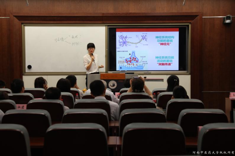 随后,决赛分医药类初中级组,医药类高级组和医药相关类组同时进行,比赛评委分别由专家和学生代表组成。在比赛过程中,各位参赛教师从教材、教学目标、教学方法、教学过程、教学反思等方面对课程进行了详尽的分析,思路清晰,逻辑合理,教学用语贴切流畅、仪表风范自然端庄,充分展示了各自的风采和特长。在综合素质问答环节,涉及到《教育学》、《教育心理学》、《教师职业道德》、教育教学改革热点和现代教育教学理论等问题,参赛教师都能结合自己的实际教学经验认真作答,理据充分,回答完整,创新发挥。参赛教师在决赛各环节的精彩表现,体现了他们娴熟的教学技能、精湛的教学艺术和良好的职业综合素质,赢得了评委及百余位观摩教师们一致好评。