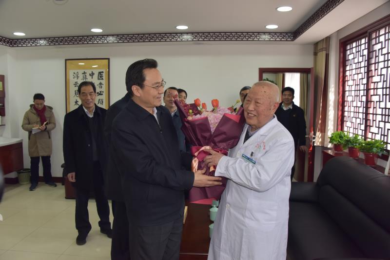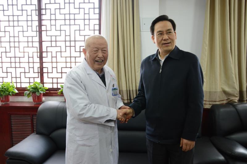 孔昌生来到张磊教授诊室,关切询问张磊教授的工作和生活情况,高度赞扬了他高尚的医徳、精湛的医术,感谢他为河南中医药事业发展做出的突出贡献,并祝福张磊教授健康长寿。