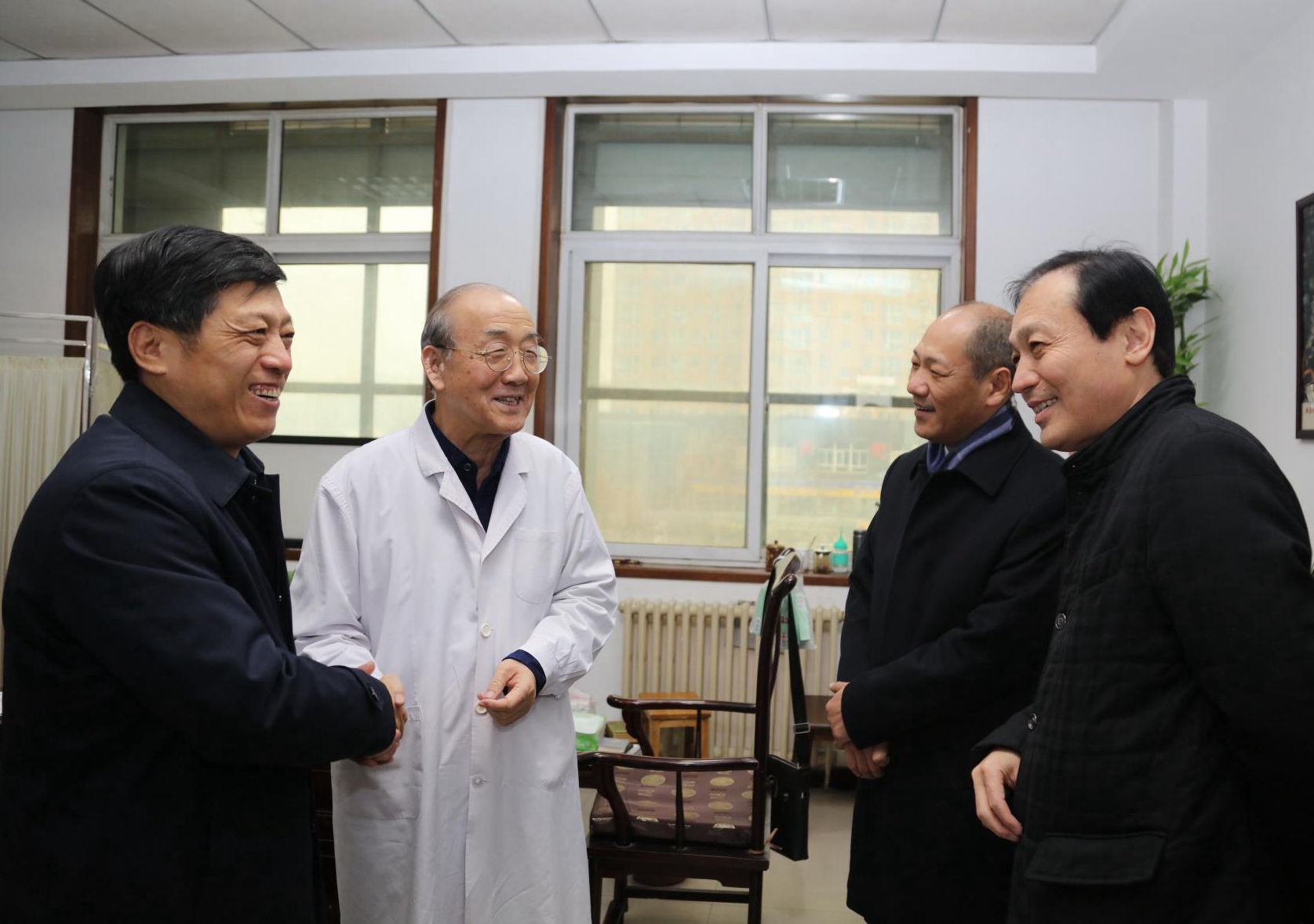 本网讯(文图/王东方)瑞犬辞旧岁,金猪送春来。2019年1月30日,正值2019年新春佳节即将到来之际,校长许二平带领二附院党委书记王海亮、院长崔应麟,到二附院名医堂看望全国名老中医毛德西教授,代表学校领导为老专家送上亲切问候与新春祝福。