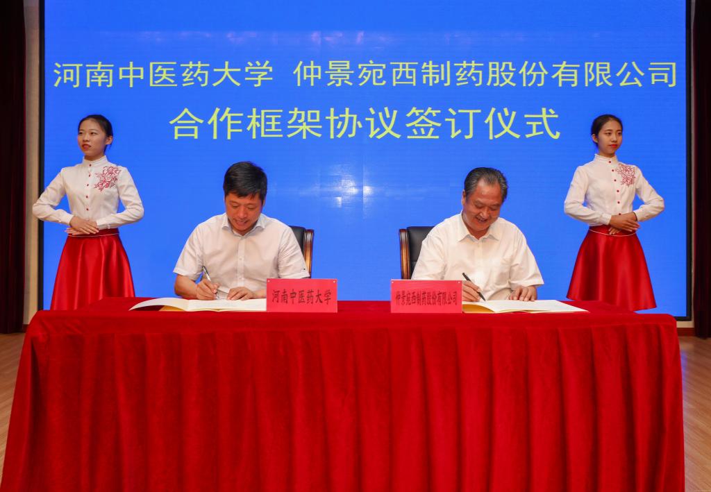 许二平校长代表学校和仲景宛西制药股份有限公司孙耀志董事长签订了合作框架协议。