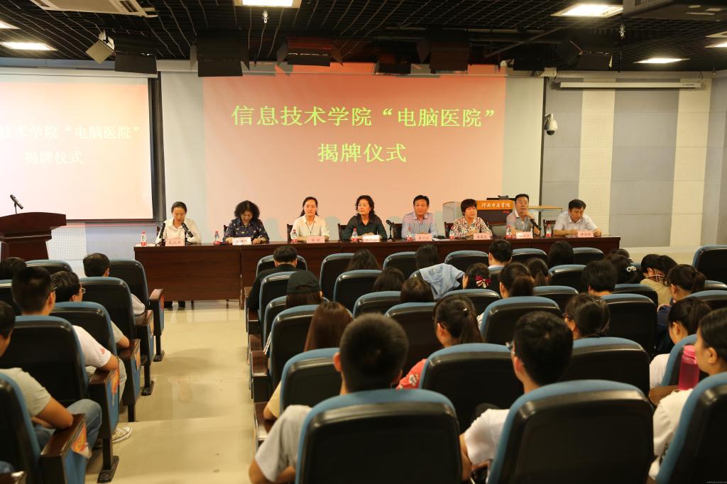 2016年5月4日,信息技术学院“电脑医院”揭牌仪式在A634举行。校党委副书记张丽霞,学校党校副校长、组织部副部长、人事处副处长翟剑波,校团委书记郭婧,学工部副部长、学生处副处长李俊芝出席揭牌仪式。信息技术学院领导班子全体成员、全体师生党员参加了此次活动。仪式由信息技术学院院长张佩江主持。