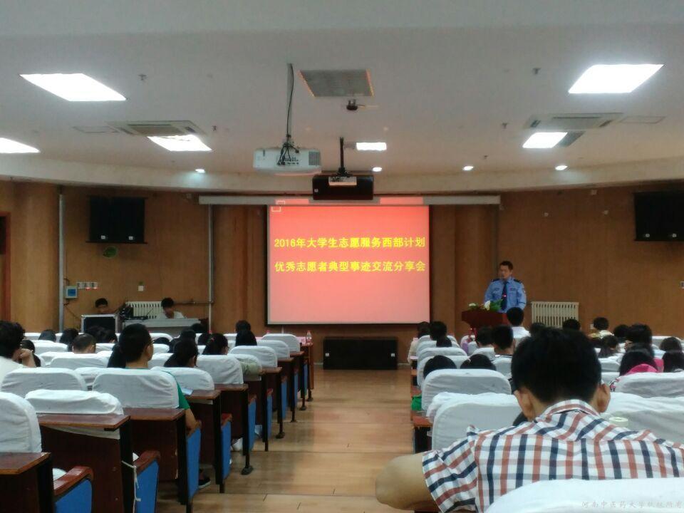 为鼓励青年到基层和人民中去建功立业,切实做好河南省大学生志愿服务西部计划,2016年5月6日上午9:00,大学生志愿服务西部计划优秀志愿者典型事迹交流分享会在我校教学楼二楼多功能厅举行。共青团林芝市委员会副书记惠鹏,共青团西藏委员会志工部主任科员孟健,团河南省委志工部干事田晓辉,我校团委全体班子成员以及各院(部)分团委团干、毕业班辅导员和毕业班学生代表参加了本次活动。交流会由校团委副书记王晓蕊主持。