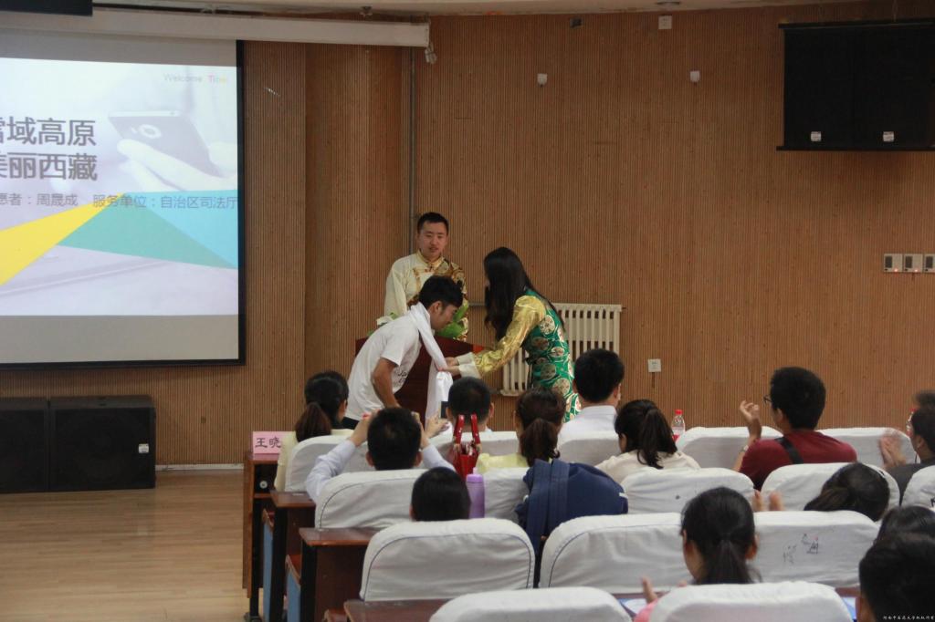 服务西藏建设工作的志愿者为我校学生献上哈达