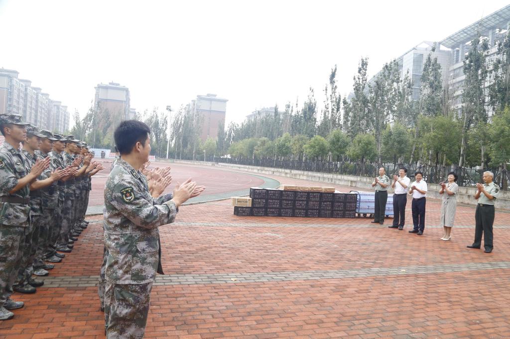 2016年9月13日上午,校党委副书记郭德欣、副校长田力带领学工部、学生处、武装保卫处有关同志到东操场慰问参与我校2016级学生军训的承训部队教官。