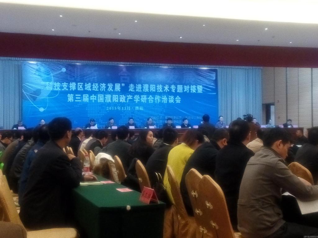 我校2013年与濮阳市政府和濮阳市生产力促进中心签署了框架合作协议,共建技术成果转移基地,第三届中国濮阳政产学研合作洽谈会进一步推动了我校巩固与濮阳的合作和交流。(科技处科技成果推广中心 )