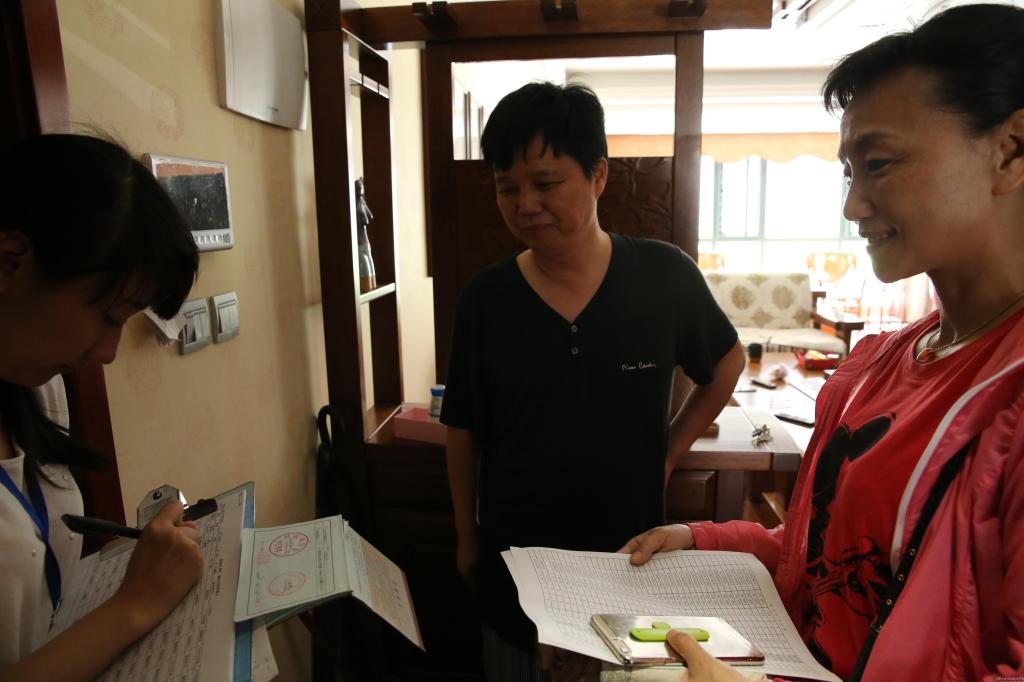 核查工作从上午11点进行到晚上7点半,核查员逐户敲门,询问登记,跑上跑下,汗流浃背。对部分因各种原因家中无人的住户,通过电话联络,逐人进行了信息登记。