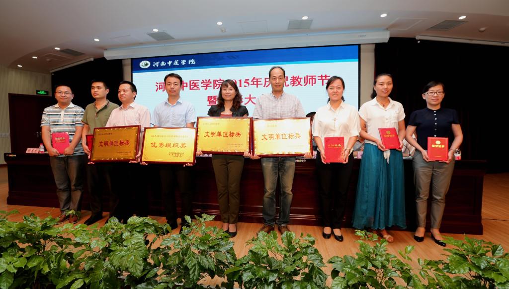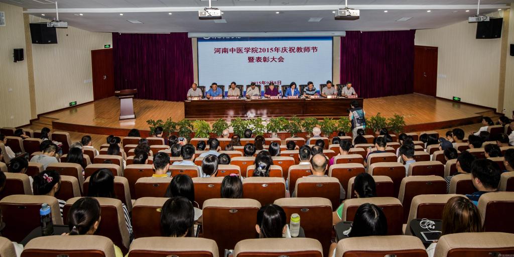 会议在庄严的国歌声中拉开序幕。院长郑玉玲向全体教职工表达了节日的祝福,并通报了2015年学校的15项重点工作:新校区建设全速推进,中西部高校基础能力建设工程进展顺利,更名大学工作扎实有序,加快推进学校的数字化校园、节约型校园、平安校园、人文校园的建设,教学工作扎实推进,强力推进通识教育改革,深化中医基石学科建设,学生工作继续保持良好态势,学科建设成效显著,研究生和留学生培养工作顺利进展,科研工作稳步推进,师资队伍建设进一步加强,社会合作步伐进一步加快,医疗工作及临床研究基地发展良好,东明校区综合开发利用稳步推进,这些消息都极大振奋了全校师生的精神。郑玉玲院长说,每年教师节都正值新学期开始,希望在新的起点,全校上下要鼓足干劲,通力协作,以受到表彰的身边的先进为榜样,团结一心,继续发挥集体智慧的力量,用饱满的热情全力推动学校的建设和发展,为把我校建设成为特色鲜明的高水平中医药大学努力奋斗。
