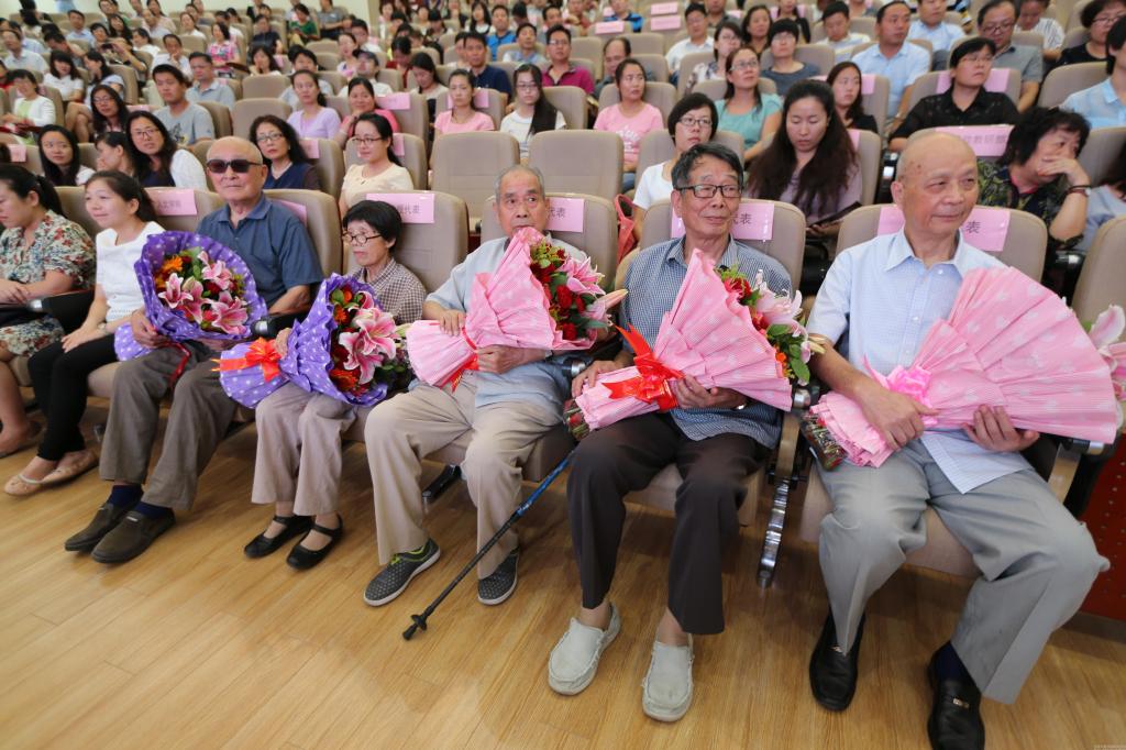 此次表彰大会还特意邀请了董润生、王汝昆、门成福、陈瑞芬、路世才5位为学校奉献半辈青春和热情的80岁以上老教师代表,用鲜花表达了全校师生的祝福和心愿。