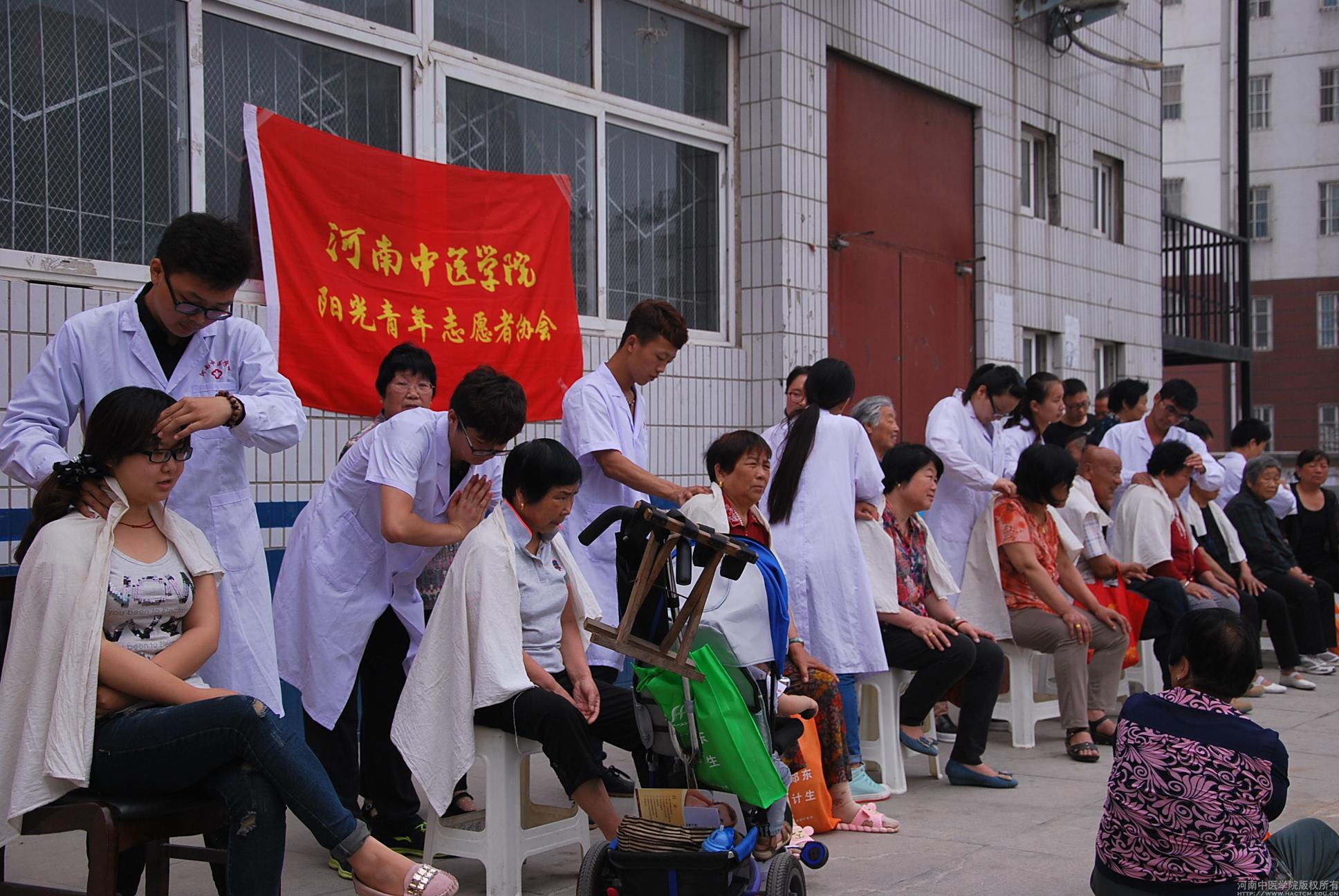 我校阳光青年志愿者协会成立十三年来,本着立足校园,服务社会,不求回报,弘扬国医等志愿者精神,引领志愿风范,以实际行动践行着国医仁心。除了每周日要来到贾岗小区服务外,阳光青年志愿者协会的社区医疗志愿服务地点还有宏图街、阿卡迪亚小区、天佑小区、华水家属院、大观国际小区、新鑫花园小区等七个服务点,每次义诊活动都有将近100位居民前来就诊、治疗。