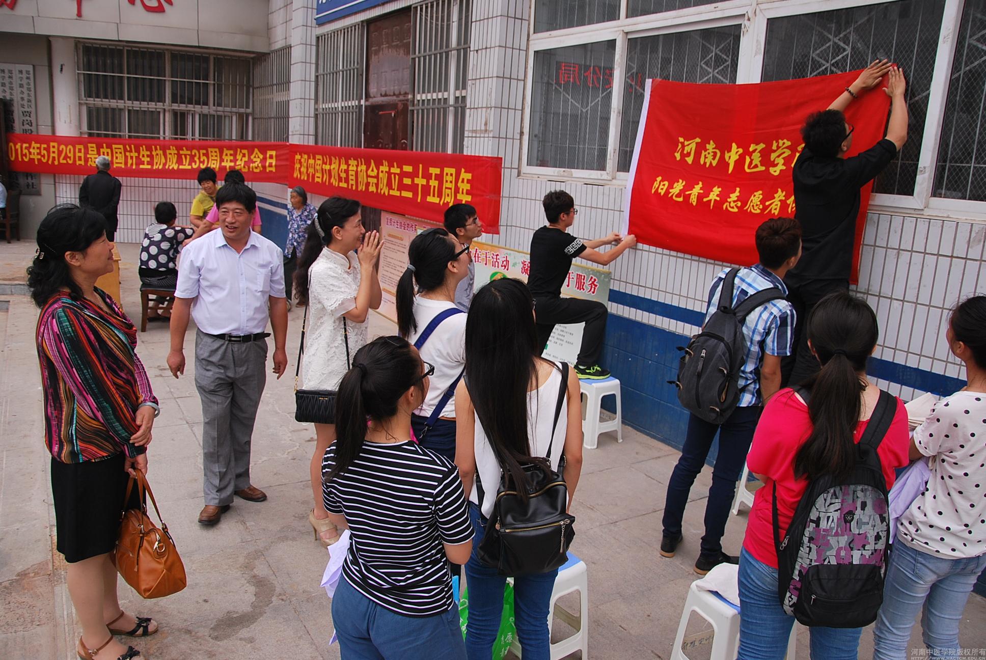 2015年5月29日上午,我校计生办工作人员带领阳光青年志愿者协会一行13人来到郑东新区博学路办事处贾岗社区,参加博学路办事处计生办举办的“庆祝计划生育协会成立35周年活动”。学校工会副主席曹蕴俐、办公室主任张婉红、计生办主任郭书伟参加了活动。