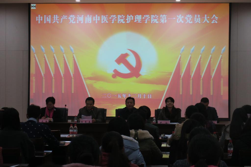 为完善护理学院党组织建设,经学校党委组织部批准,按照《中国共产党章程》和《中国共产党基层组织选举工作暂行条例》的有关规定,2015年12月10日晚,护理学院在图书馆第二报告厅召开第一次党员大会,选举产生党总支委员和各党支部委员。学校党委组织人事部副部长翟剑波同志出席会议,护理学院党政领导班子、正式党员、预备党员、无党派人士代表参加了党员大会。大会由院长杨英豪同志主持。