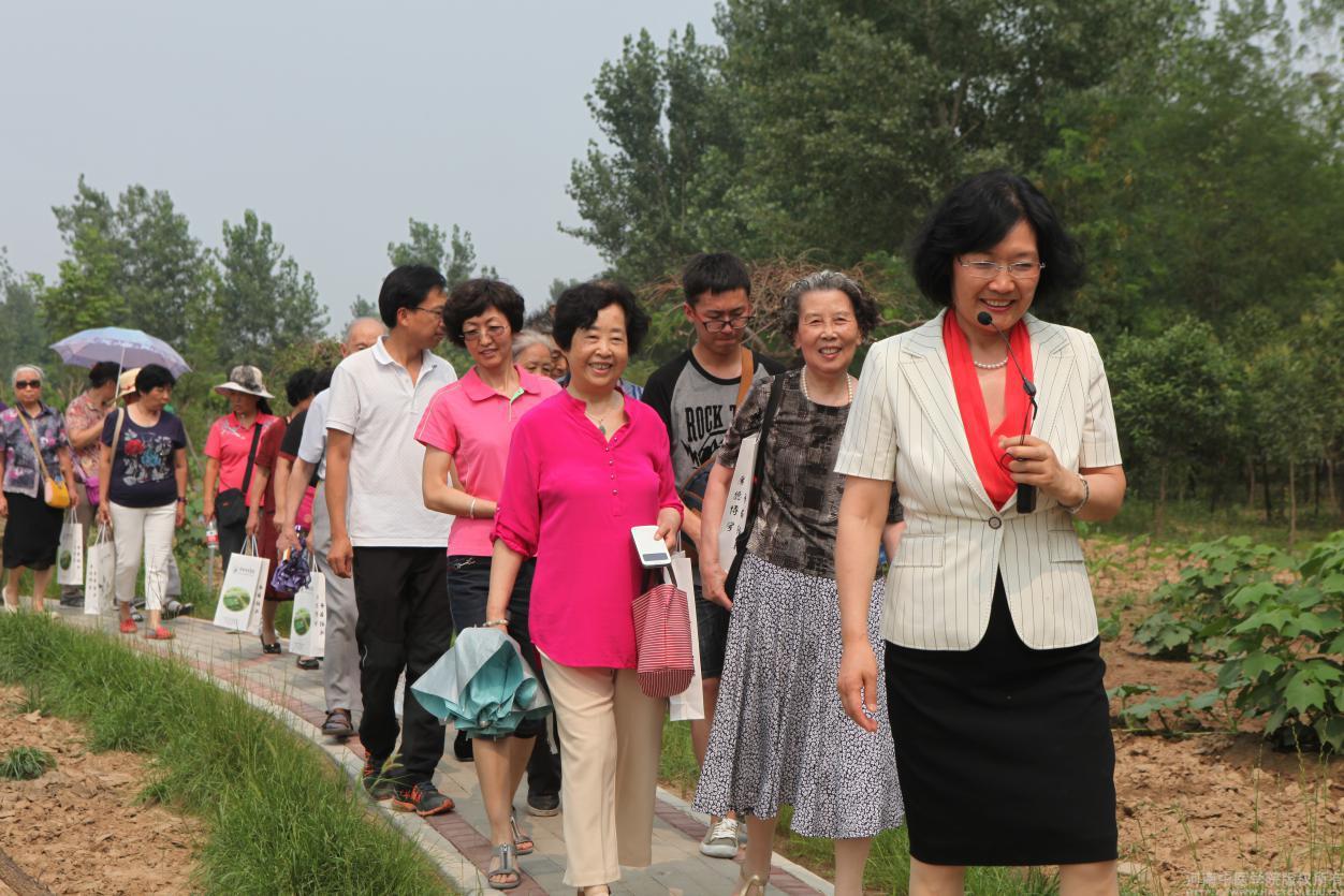 郑玉玲院长向大家介绍中药植物园内植物和整体布局