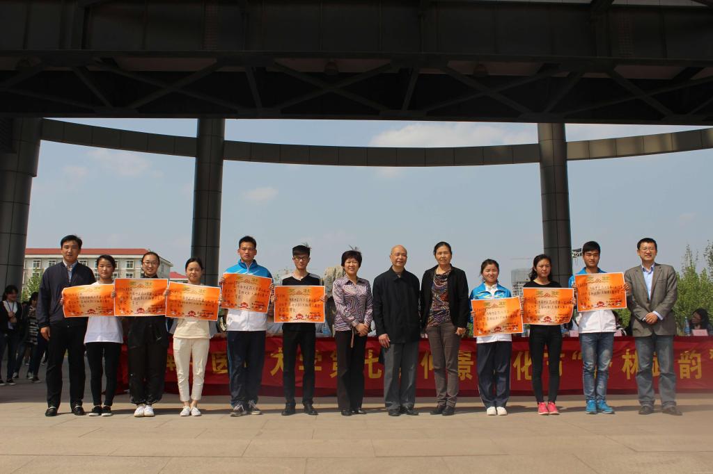 以柔克刚,以静制动,以弱制强,谓之太极。2016年4月19日中午,由我校针灸推拿学院承办的第七届大学生仲景文化节“杏林武韵”太极拳大赛在国旗广场举行。世界医学气功学会常务理事、专家委员会专家、我校医学气功学研究所所长路世才教授、体育教研部主任孙再玲、校团委书记郭婧、学生处副处长李俊芝、校团委副书记高磊、王晓蕊、针灸推拿学院党委副书记袁晓宇、人文学院党委副书记庞亚宾、职业技能鉴定中心郑进科老师观看了比赛。