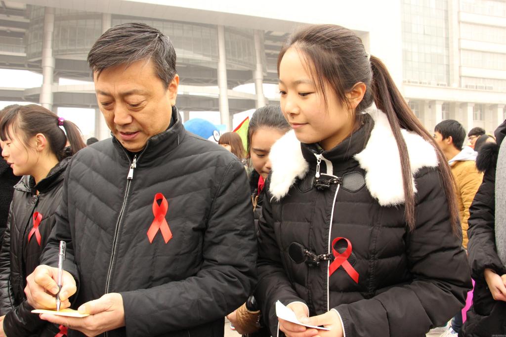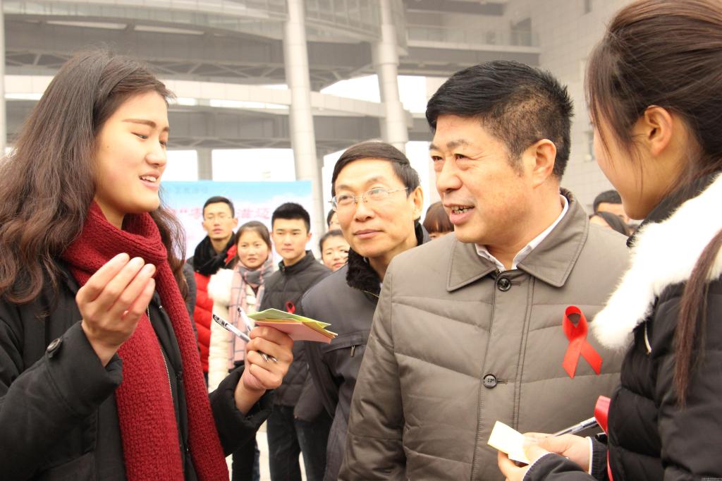 活动期间,河南省卫生与计划生育委员会李广胜主任一行在徐江雁副校长的陪同下对活动现场进行指导,同时与志愿者们亲切交谈,跟大家讲解艾滋病防护的相关知识,并在祝福墙上签字,表达了对本次艾滋病宣教活动的支持。
