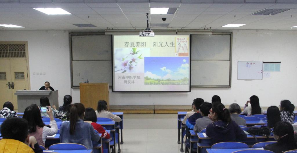 周发祥教授首先解释了《黄帝内经》中“春夏养阳,秋冬养阴”的含义,指出许多疾病的发生都是由于脏腑经脉气机失调所致,“人有五脏化五气,以生喜怒悲忧恐”,所以医病要先医“心”。之后,周发祥教授指导大家把握心理养生的三原则:顺四时而适寒暑,和喜怒而安居处,节阴阳而调刚柔,保持人与自然环境、社会环境和自身环境的协调。最后,周教授告诫大家应顺应春生夏长秋收冬藏的自然规律做好心理养生,培养良好的学习、生活和工作状态,塑造良好的性格特征,这对于大学生成长成才、职业发展都具有非常重要的作用。周发祥教授的讲座理论与实践相结合,通俗易懂,赢得了师生们的阵阵掌声。