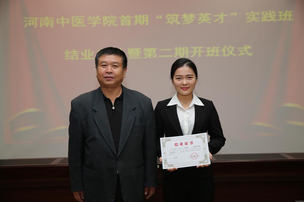 仪式上,首期“筑梦英才”实践班学员代表汇报了毕业总结和毕业感言。孙书记逐一为首期30名学员颁发结业证书并合影留念。第二期学员代表发言并作出郑重承诺。实践班班主任、党委副书记张丽霞对首期实践班的开展情况及取得的成绩给予充分肯定,对第二期学员提出了要求与期望,希望同学们勤学修德、明辨笃实,以身作则、率先垂范,以点带面,带动全校学生综合素质的提升。