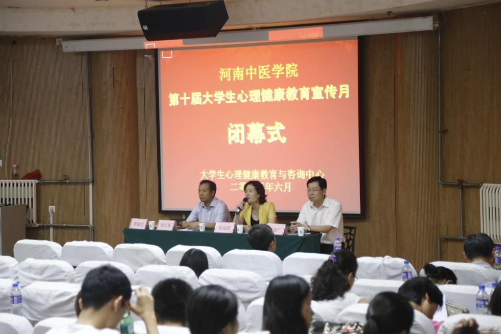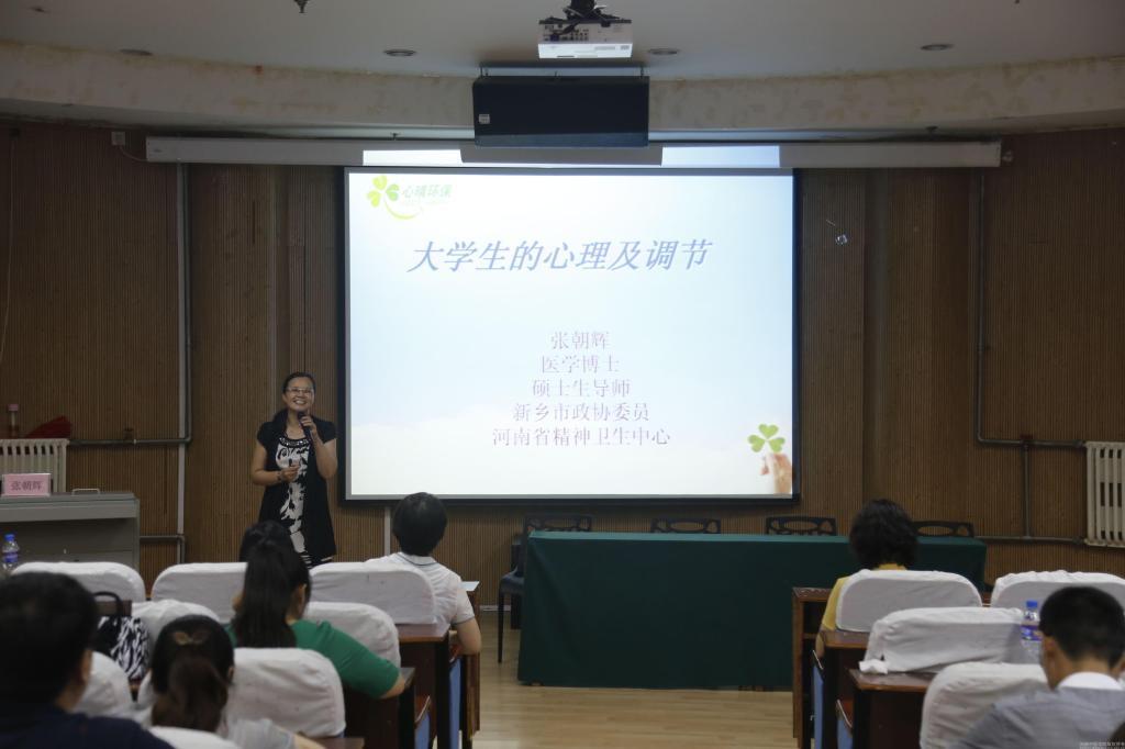 闭幕式后,河南省精神卫生中心(河南省精神病医院)主任医师张朝辉博士为现场师生作了题为《大学生常见心理问题及调节》的专题讲座。张朝辉博士对大学生的心理特点、发展规律和常见心理问题进行了详细讲解,对大学生如何做好心理调节提供了实用的技巧方法,并现场与我校师生进行了亲切互动,受到了老师同学们的热烈欢迎。