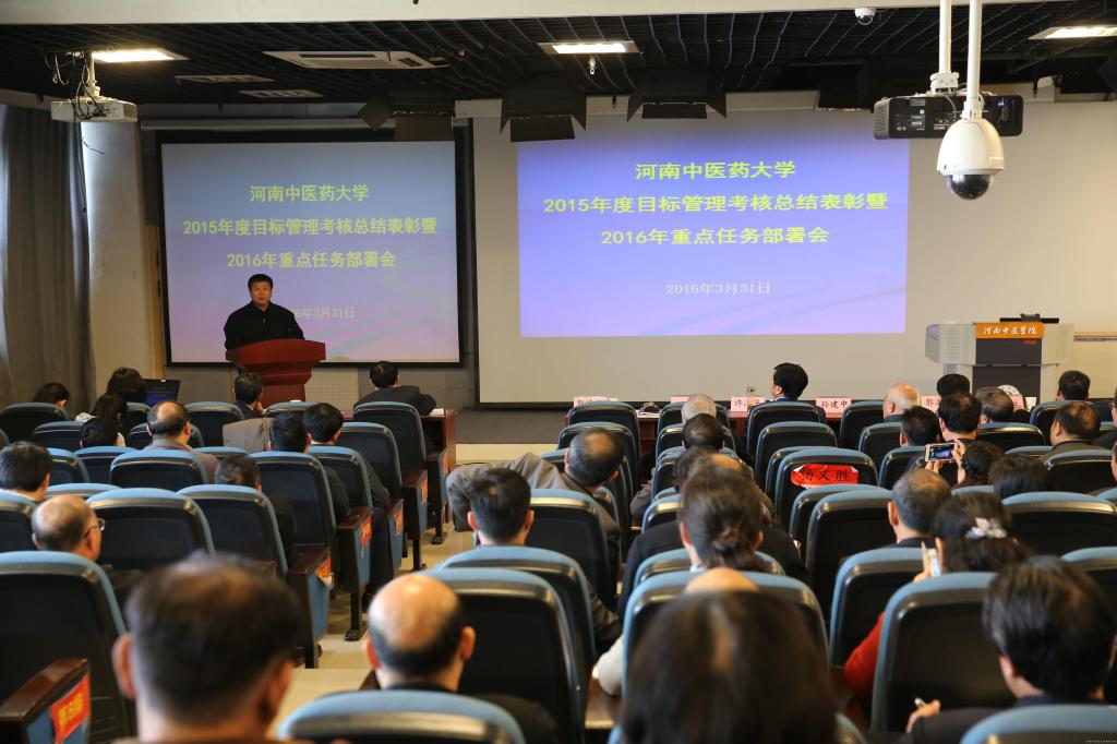 2016年3月31日上午,我校召开了2015年度目标管理考核总结表彰暨2016年重点任务部署会。校领导和全体处级干部参加了大会。会议由党委副书记张丽霞主持。