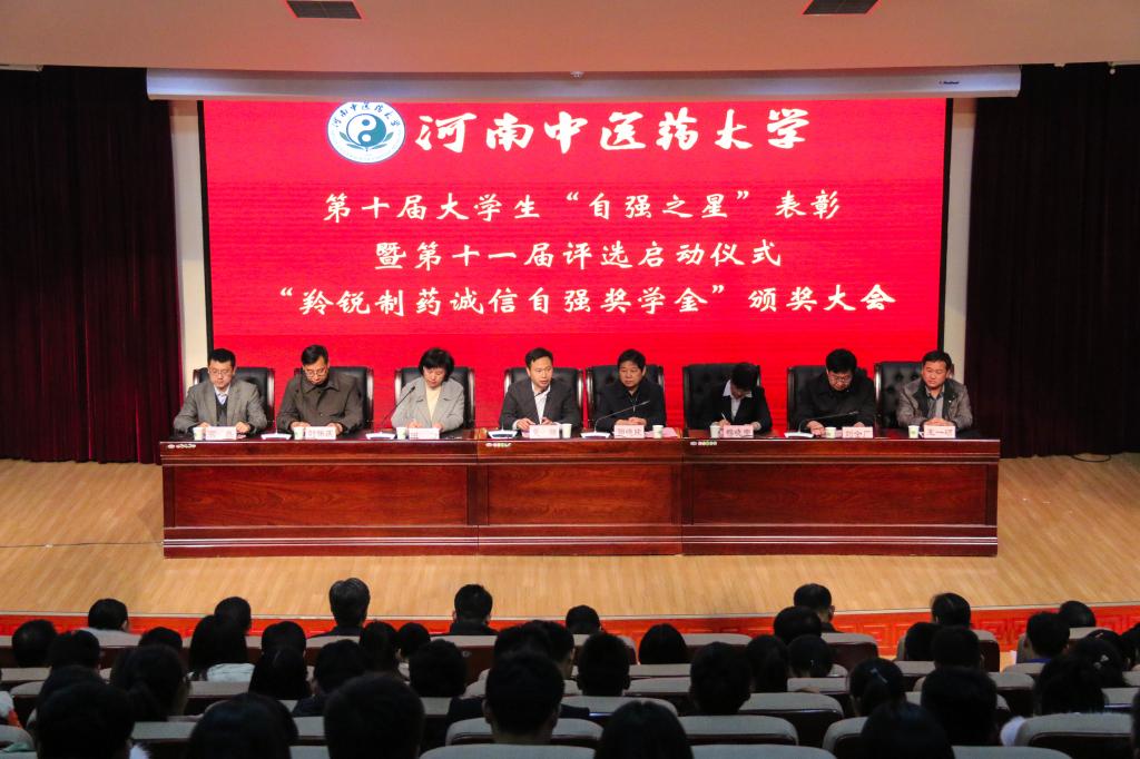 2016年12月1日晚,我校第十届大学生“自强之星”表彰暨第十一届评选活动启动仪式、“羚锐制药诚信自强奖学金”颁奖大会在图书馆第一报告厅举行。河南羚锐制药股份有限公司副总经理夏辉,河南羚锐制药股份有限公司人力资源总监穆晓莹,我校党委副书记郭德欣,副校长田力,党委宣传部部长刘保庆,学工部部长、学生处处长刘金厂,校团委副书记高磊,我校首届“自强之星标兵”、全国首届道德模范王一硕出席了会议。各二级学院主管学生工作的党委副书记,学工部、校团委及各二级学院分团委老师和350余名学生参加了本次会议。大会由田力副校长主持。