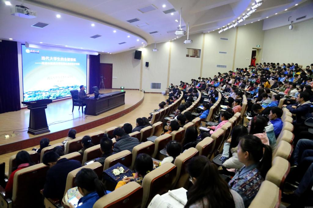 2015年11月11日晚图书馆第一报告厅,武汉大学马克思主义学院熊建生教授作客我校大学生素质教育讲堂,以“当代大学生的全能修炼”为题,为300余名师生作精彩学术报告。各二级学院全体辅导员和2015级新生代表现场聆听讲座,学工部部长、学生处处长刘金厂主持。
