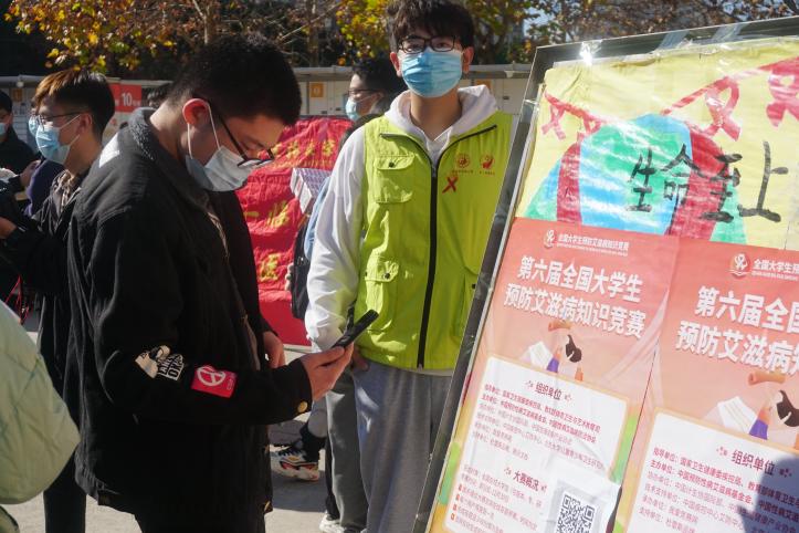 活动现场,我校艾滋病防治明星社团“杏林志愿者服务团”和“关艾红丝带协会”的志愿者们细心为同学们讲解艾滋病的产生、发展与防治。此外,志愿者们还准备了艾滋病防治的网络知识竞赛,同学们通过扫码答题了解艾滋病相关知识,领取红丝带及小礼物。我校同学参与积极,近2000人完成了线上答题,以理解、尊重艾滋病为设计理念的卡通人物“小艾艾”受到同学们的追捧,纷纷驻足合影。
