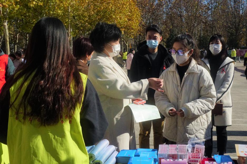 本网讯(文/郭薇 图/陈占科)为进一步增强我校大学生自我保护意识,促进大学生的健康成长,营造积极向上、健康文明的校园文化氛围,遏制青年学生人群中艾滋病的传播和流行。2021年12月1日,在第34个“世界艾滋病日”到来之际,我校在杏苑餐厅门前开展“认识艾 拥抱艾 放心艾”世界艾滋病日宣传活动。校党委委员、副校长田力,学工部、团委、第一临床医学院、一附院龙子湖院区相关负责人等来到活动现场,和全校同学共同参加了此次活动。