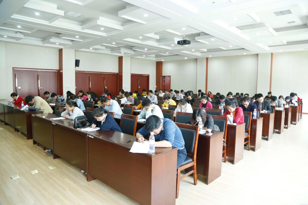 笔试考试采用闭卷方式进行,试卷体现两大特点。一是题型多样,包括单项选择题、多项选择题、判断题、简答题、案例分析题和博文写作等;二是内容覆盖面广,主观题和客观题相结合,内容涉及中央16号、59号文件、教育部第24号令、高等学校辅导员职业能力标准(暂行)规定等与大学生思想政治教育、辅导员队伍建设有关的文件精神;有《河南中医学院辅导员队伍建设规定》、《河南中医学院学生手册》等与学生日常教育、事务管理、发展服务相关的规章制度,有教育学、心理学、管理学以及时政要闻等方面的理论知识和形势政策,既涉及理论积累、工作认知,又涵盖时事热点、网络新事物。考试中,全体辅导员积极参与,准备充分,精神饱满,认真作答。
