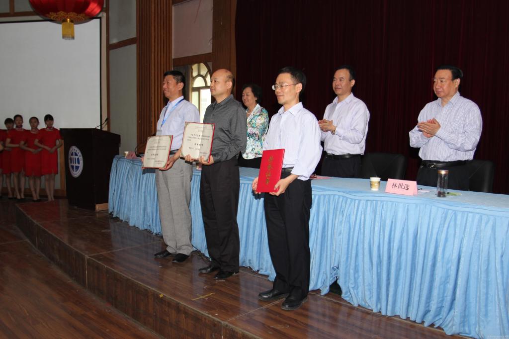 我校宣传部刘保庆(右一)、思政部谭备战(右二)获优秀论文一等奖