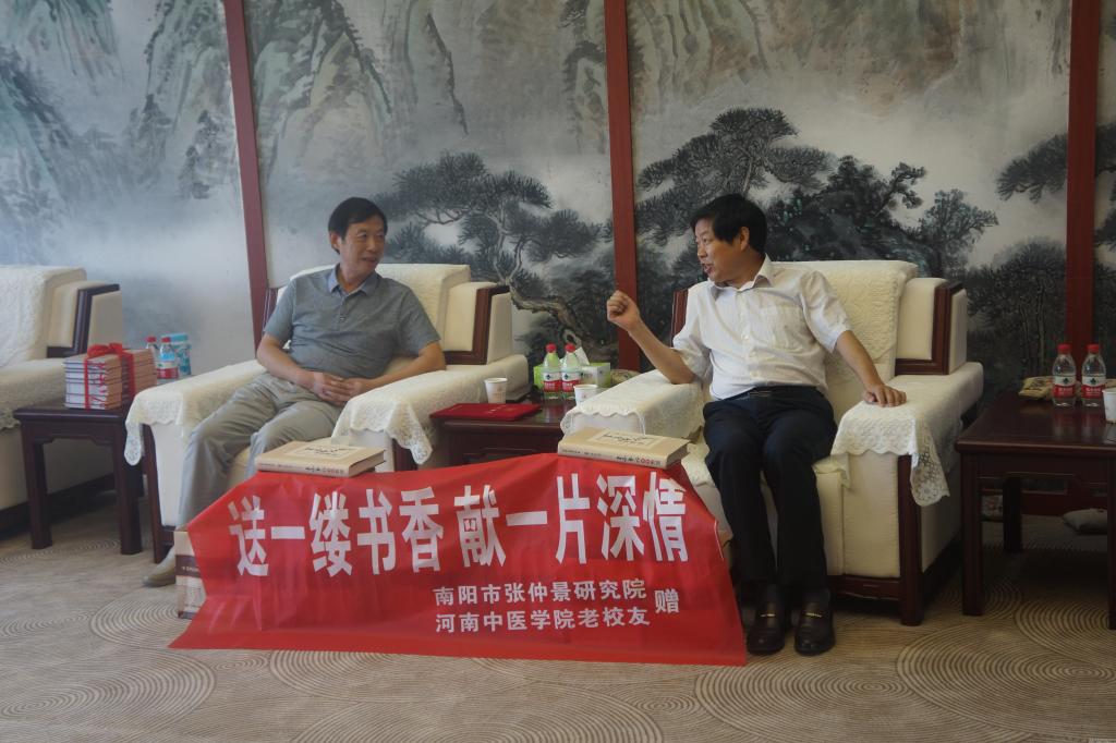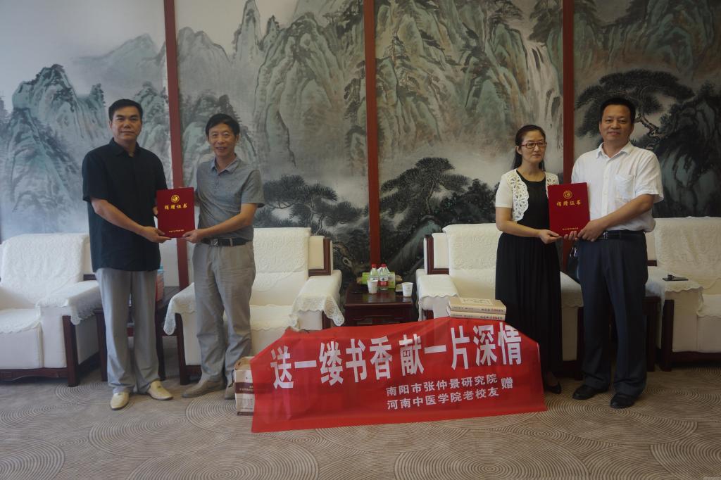 2015年8月6日上午,我校77级校友、南阳中医中药研究所所长包飞建,81级校友、南阳中医中药研究所书记郭敏图书捐赠仪式在学校图书馆贵宾厅举行。副院长郭德欣出席了捐赠仪式。图书馆领导班子及校友办相关人员参加了仪式。仪式由校友办主任张婷婷主持。