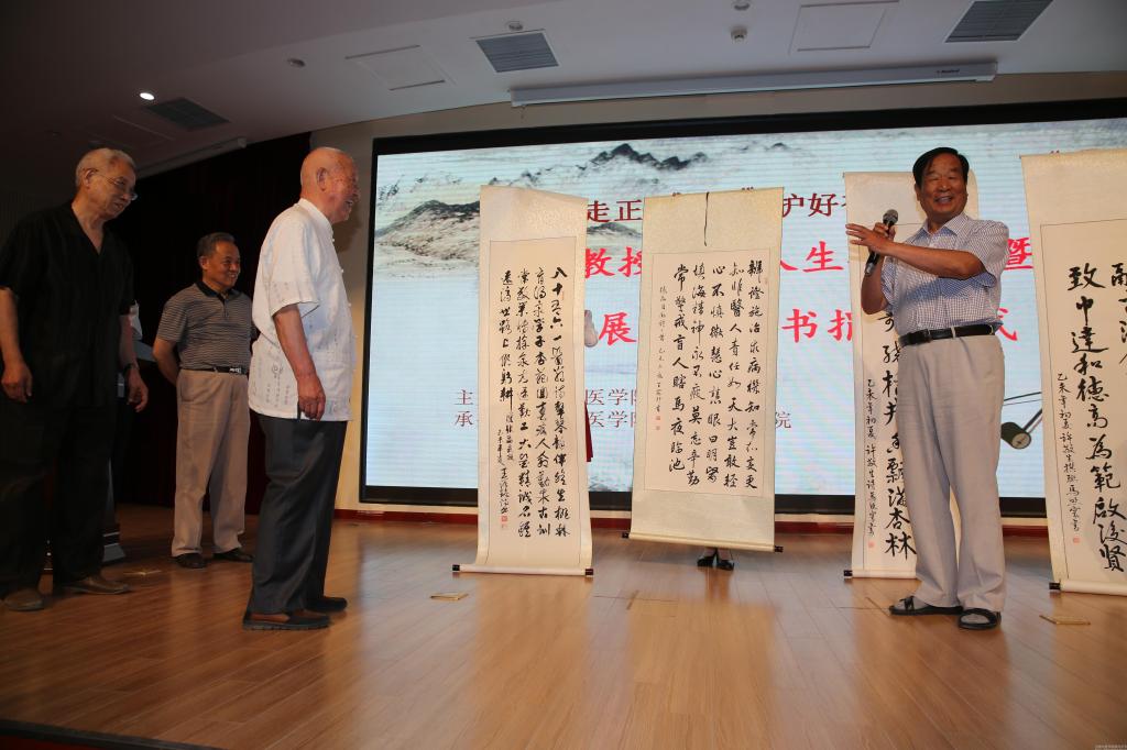 在得知学校要举办此次活动的消息后,我校退休专家代表马照寰、王安邦、王浴铭纷纷挥毫泼墨,将书画作品带到现场,向张磊教授表示祝贺。