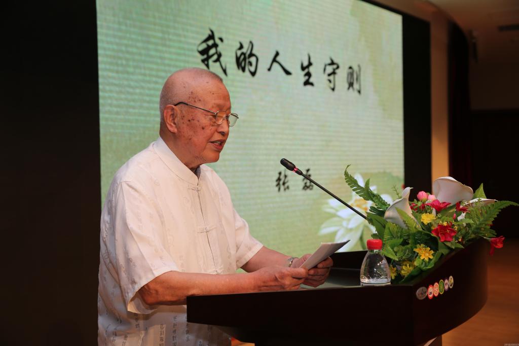 接着,张磊教授作《我的人生守则》报告,他表示,学校能举办这样的活动,作为老学生甚感荣幸和激动,自己也会借此契机更加努力工作,学到老,干到老,干到老,学到老,学无止境,医无止境,争取为病人服务100年。他在报告中说,他的一生简单质朴,潜心医学,始终遵循着自己的“人生守则”:一是堂堂正正做人,尽力做到不愧天、不愧地、不愧人。留校任教期间,以做好教书育人工作为最大职责;行医问诊期间,始终以病人为中心,端正心术,把良好医德贯穿在诊治病人的整个过程中,不但开好有药处方,更开好无药处方。二是老老实实干事,做事情公私都要一个样,不虚伪,不奸诈,认真求实,任劳任怨。三是勤勤恳恳学习,向他人学习,向书本学习,向个人学习,勤字为先。张磊教授也对当前中医药发展存在的扬西医之长、药物炮制不规范等问题提出了自己的看法。