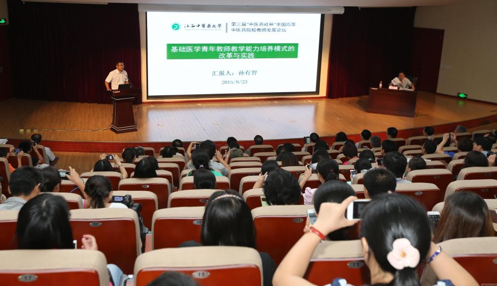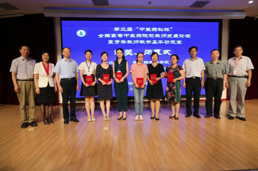 2015年8月23日下午,第三届“中医药社杯”全国高等中医药院校教师发展论坛、青年教师教学基本功竞赛获奖优秀教师示范教学和颁奖闭幕式依次在我校新图书馆第一报告厅进行。来自全国37所中医药高等教育院校的近400名评委和选手参加仪式。