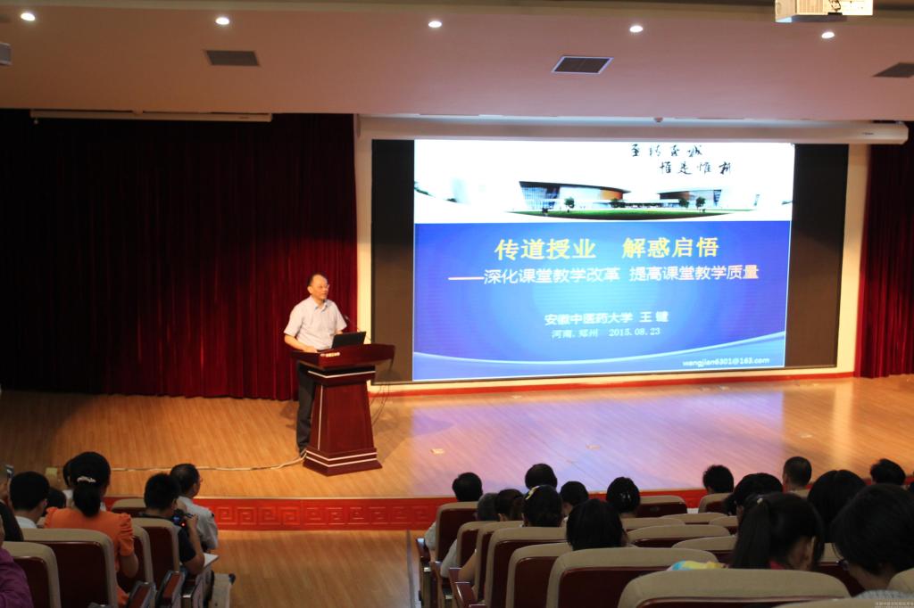 在教师发展论坛环节,安徽中医药大学校长王键、浙江中医药大学教师发展中心主任来平凡和江西中医药大学教师孙有智分别以《传道受业解惑启悟——深化课堂教学改革 提高课堂教学质量》、《有效教学设计》和《基础医学青年教师教学能力培养模式的改革与实践》为题,与现场同仁交流教学经验,分享育人心得。