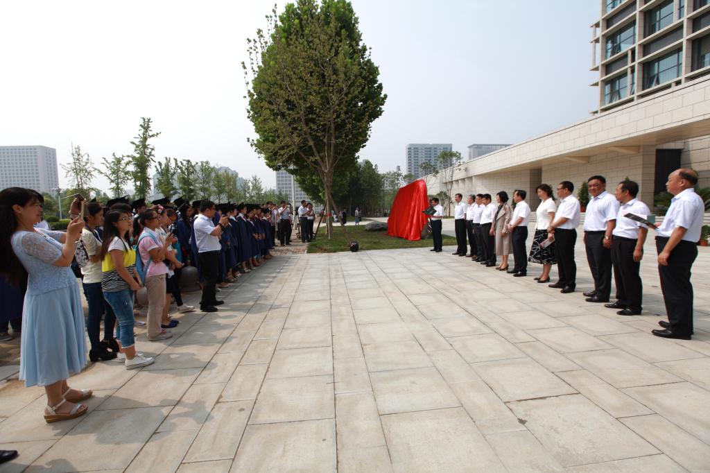 省卫计委副主任、中医管理局局长张重刚,河南太龙药业有限公司副总经理邢泽田、桂伟,与校党委书记孙建中、院长郑玉玲共同为博物馆揭幕。