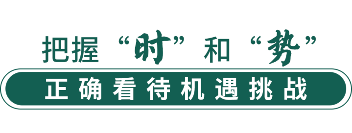面对“机遇和挑战都有新的发展变化”“机遇和挑战之大都前所未有”,习近平辩证地指出,“当今世界正经历百年未有之大变局,但时与势在我们一边”“总体上机遇大于挑战”。