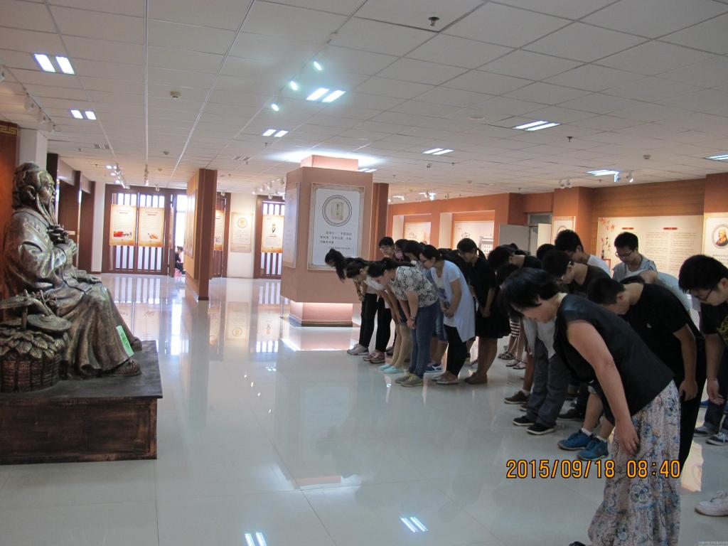 师生在医德馆向被世人尊称为药王的孙思邈的塑像前鞠躬