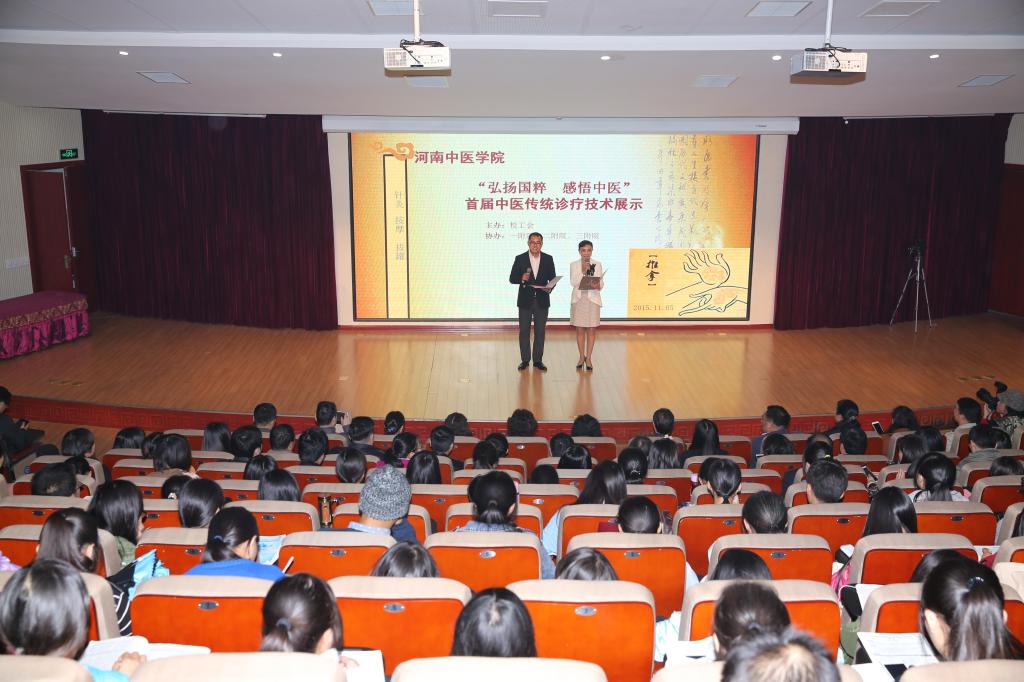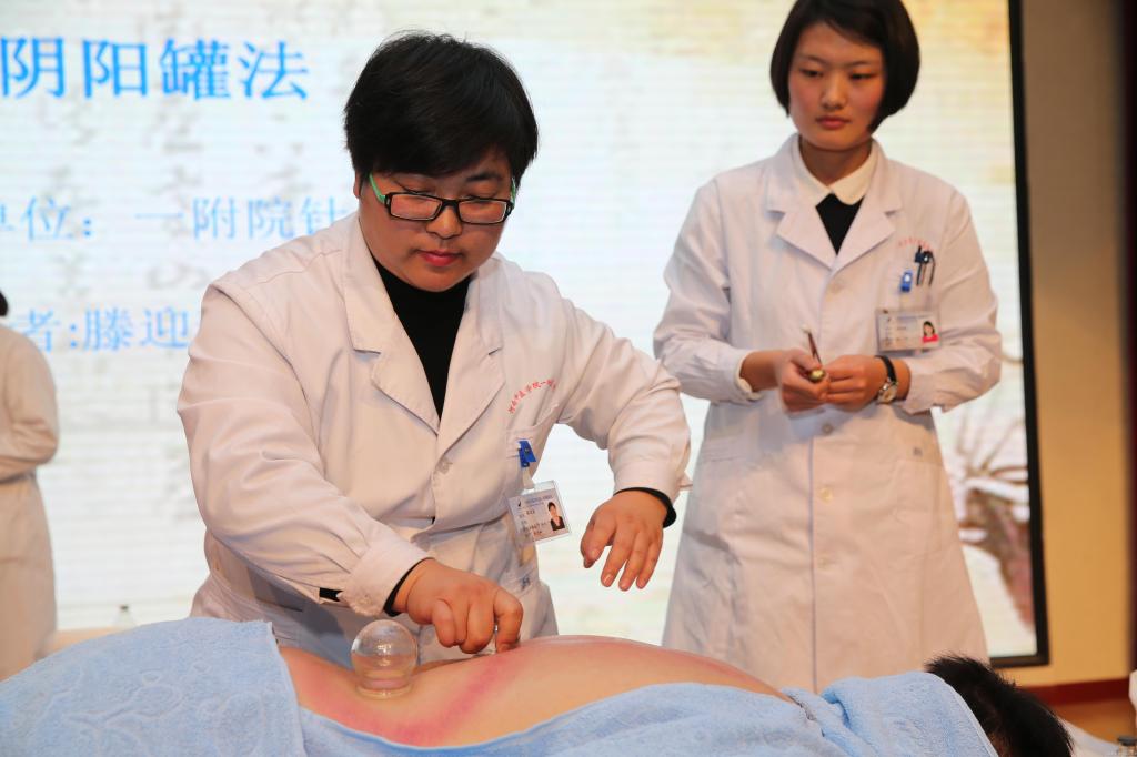 由校工会主办、一附院、二附院、三附院协办的我校首届“弘扬国粹 感悟中医”中医传统诊疗技术展示活动,于11月5日下午在第一报告厅成功举办。院长郑玉玲、党委副书记、工会主席段荣章、党委副书记张丽霞、副院长张小平与师生一起观看了展示。