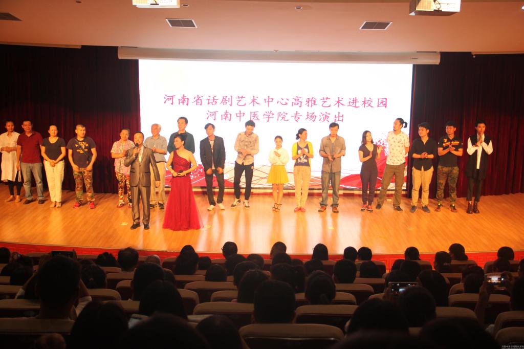 2015年9月16日晚七点,由河南省教育厅、文化厅、财政厅主办,校团委承办的河南省话剧院“高雅艺术进校园”专场演出在我校图书馆第一报告厅举行。院长郑玉玲、党委副书记张丽霞、河南省话剧院相关领导及400余名师生共同观看了精彩演出。