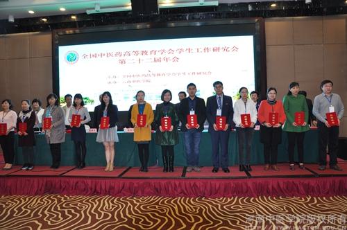 本次年会对2014——2015年度全国高等中医药院校优秀辅导员进行了表彰,并对学生工作科研课题进行立项资助。我校针灸推拿学院徐强、信息技术学院李京华荣获“2014——2015年度全国高等中医药院校优秀辅导员”称号;白海霞课题《中医药院校大学生社会主义核心价值观培育研究》获年会科研项目立项。