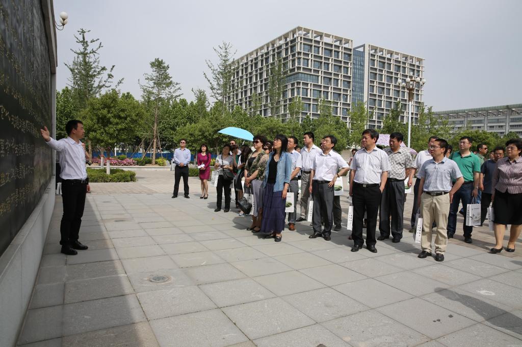 2015年5月14日上午,在河南省高校工委河南大学培训中心主任王创峰的带领下,省高工委第35期中青班培训班五十余名学员来到我校参观交流。副院长张小平带领党院办、组织部、宣传部、计财处、保卫处、后勤集团公司及基建处等相关部门的负责同志接待并陪同参观。