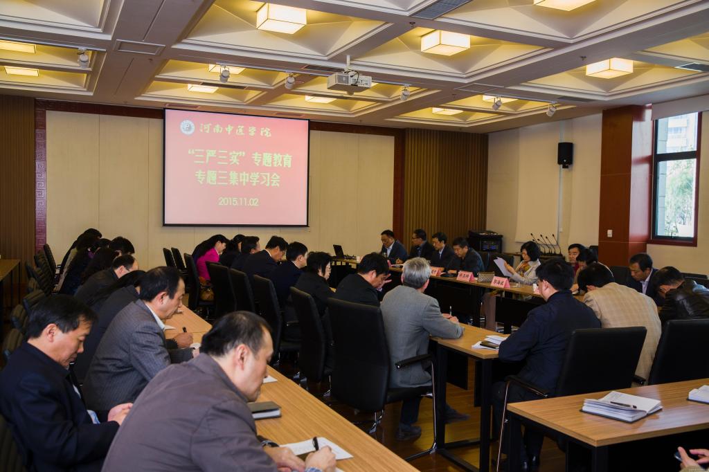 为进一步加强对“三严三实”专题教育第三专题内容的学习,按照中央和省委的部署,根据学校“三严三实”专题教育的安排,2015年11月2日下午,我校党委中心组专题三学习(扩大)会在图书馆第三报告厅举行。校党委书记孙建中围绕“严以用权,真抓实干,实实在在谋事创业做人,树立忠诚、干净、担当的新形象”主题进行领学。在郑校领导,各部门、各单位党政正职,校纪委委员,校专题教育办公室成员参加了学习会。